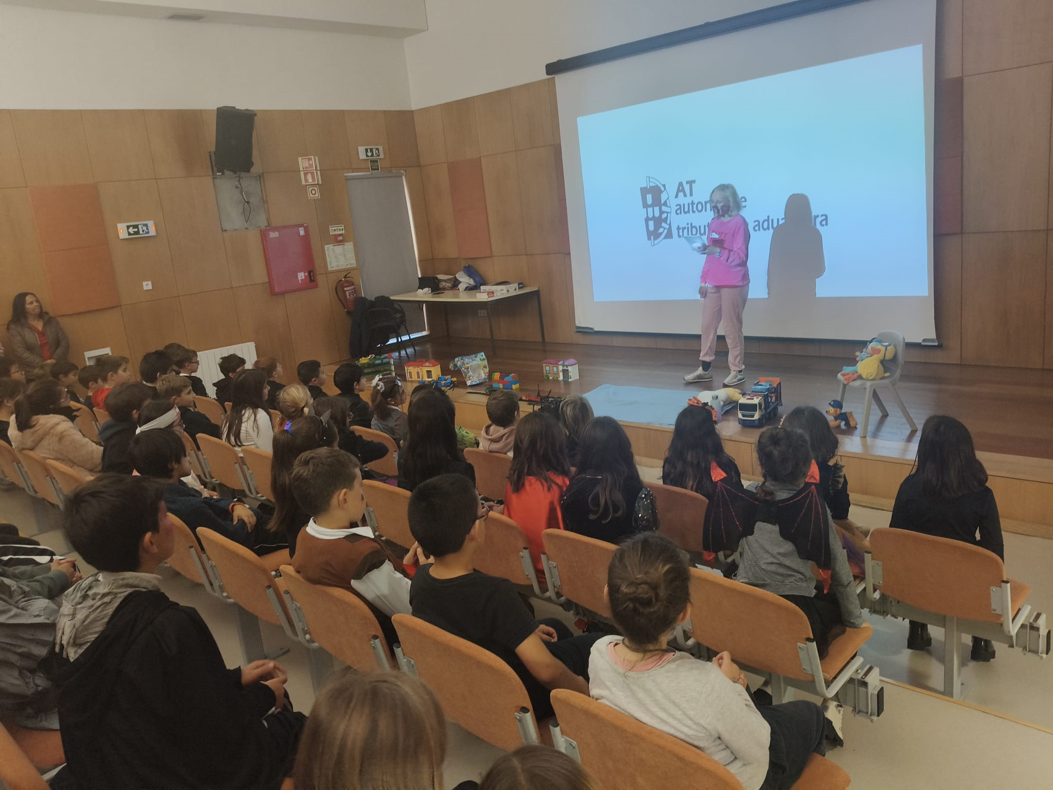 A ação de sensibilização, que consistiu numa pequena dramatização de uma pequena parte do livro “Joaninha e os Impostos”, foi um sucesso junto dos alunos da escola do primeiro ciclo, em especial junto do 3.º e 4.º ano.